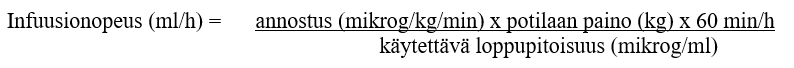 Infuusionopeus 0,6 ml/kg/h =