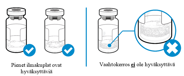 - injektiopullossa on hiukkasia tai vaahtokerros.