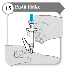 - Työnnä ruiskun mäntää hitaasti alas, kunnes säiliö on tyhjä.