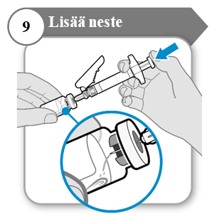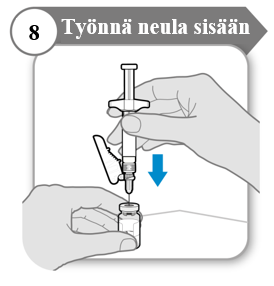 8. Työnnä neula sisään injektiopulloon