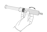 1. Kiinnitä männän varsi ruiskun kumitulppaan kiertämällä mäntää kellonsuuntaisesti kunnes se pysähtyy.