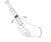 6. Irrota tyhjä injektiopullo ruiskusta. Irrota neula ruiskun kärjestä ja hävitä se. Peitä ruisku ruiskun suojuksella. Sekoita ruiskun sisältö varovasti.