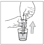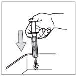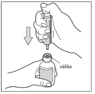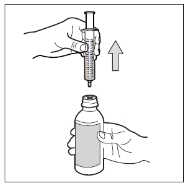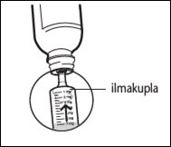 Käännä pullo pystyasentoon ja poista ruisku kokonaan pullosta. Varo painamasta mäntää tässä vaiheessa.