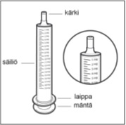 • Jokaisen pullon mukana on polypropeeninen oraaliruisku, johon on merkitty annosasteikko milligrammoina propranololi