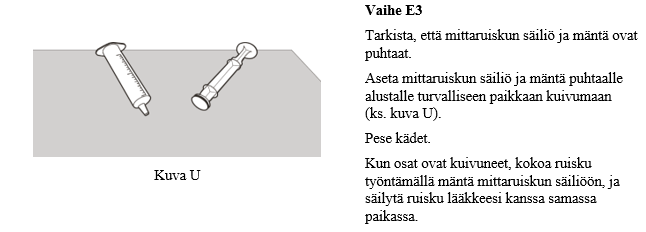 - välittömästi sen jälkeen, kun se on vedetty mittaruiskuun. Jos lääkettä ei oteta 5 minuutin kuluessa, hävitä mittaruiskussa oleva lääke ja vedä siihen uusi annos.