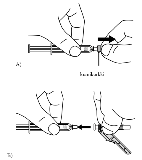 - Vedä kumikorkki irti ruiskun päästä (A).