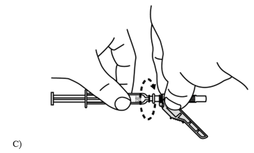 - Tarkista ruisku ja neula, etteivät ne ole vahingoittuneet. Jos olet pudottanut ruiskun tai jos ruiskun jokin osa vaikuttaa vahingoittuneelta, älä käytä ruiskua.