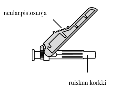 - Älä kiinnitä ruiskun korkkia takaisin injektioneulan suojaksi.