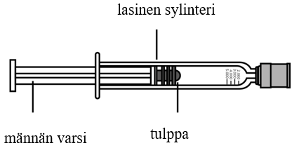 - Tarkista ruiskun sisältämä liuos. Liuoksen pitää olla kirkasta ja väritöntä. Jos liuos on sameaa tai värjäytynyttä tai havaitset siinä hiukkasia, älä käytä ruiskua.