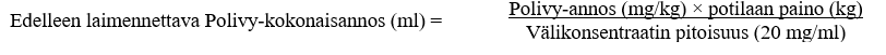 2. Laske tarvittava välikonsentraatin liuostilavuus (20 mg/ml) tarvittavan annoksen perusteella (ks. jäljempänä):