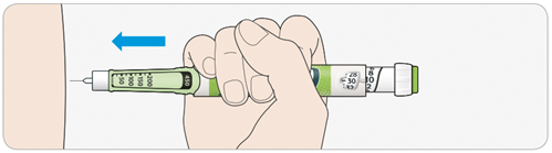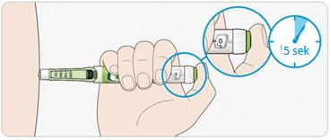 E Vapauta annostelunappula, kun olet pitänyt sitä pohjassa ja laskenut hitaasti viiteen. Poista sitten neula ihostasi.
