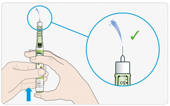 - Voit joutua toistamaan tämän vaiheen jopa 3 kertaa ennen kuin näet insuliinia ilmestyvän neulan kärkeen.