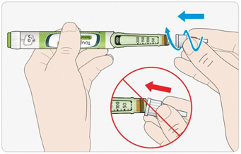 - Jos olet sokea tai heikkonäköinen, älä käytä esitäytettyä kynää ilman apua, sillä et pysty lukemaan kynän annosikkunaa. Pyydä apua henkilöltä, jolla on hyvä näkö ja jota on opetettu käyttämään tätä kynää.