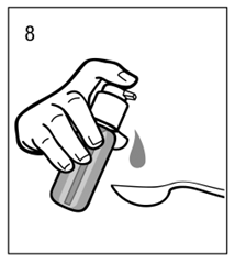 Oraaliliuosta ei saa kaataa eikä pumpata suoraan suuhun pullosta tai pumpusta. Mittaa annos pumpulla lusikkaan tai vesilasiin.