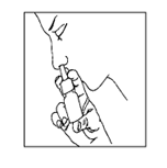 - Aseta sumutepullon nenäkappale sieraimeen ja sumuta yksi suihke (ks. kuva 2). Toista sama toimenpide toiseen sieraimeen. Sumutettuasi annoksen hengitä rauhallisesti nenän kautta sisään.