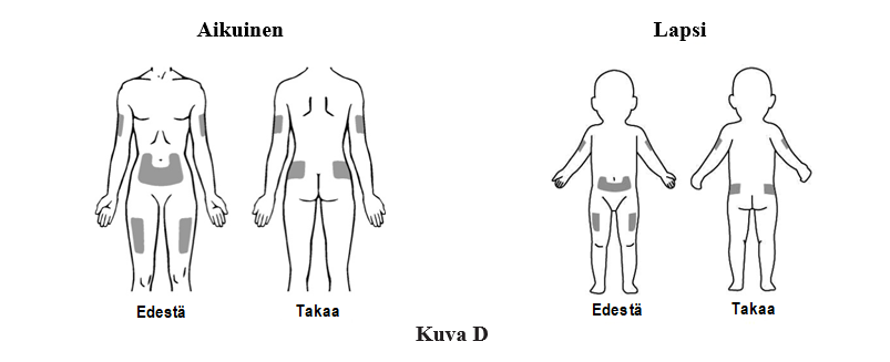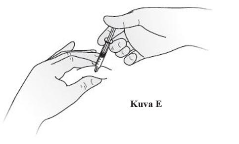 3. Ruiskuta lääke hitaasti ja tasaisesti, ja pidä koko ajan ihopoimua sormien välissä kuvan E mukaisesti.