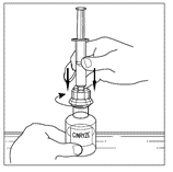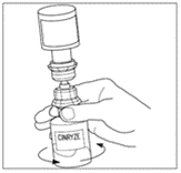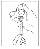 5. Käännä injektiopullo varovasti ylösalaisin ja injisoi ilmaa liuokseen ja vedä käyttökuntoon saatettu Cinryze-liuos sen jälkeen hitaasti ruiskuun. |   |