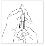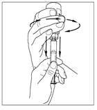 6. Irrota ruisku injektiopullosta kiertämällä sitä vastapäivään ja vapauttamalla se annosteluvälineen kirkkaasta päästä. |   |