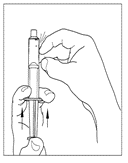 3. Vedä steriilin 10 ml:n kertakäyttöruiskun mäntää taakse päin ja päästä ruiskuun noin 5 ml ilmaa. |  |