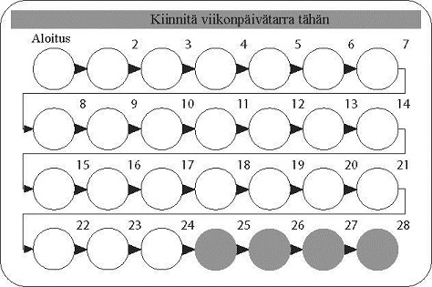 - kuukautiset jäävät tulematta ja epäilet olevasi raskaana (älä aloita seuraavaa läpipainoliuskaa, ennen kuin lääkäri antaa luvan, katso myös kohta Miten valmistetta käytetään "Jos yhdet tai useammat kuukautiset ovat jääneet tulematta").