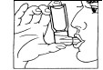 5. Håll andan några sekunder. Ta munstycket från munnen och andas ut långsamt.