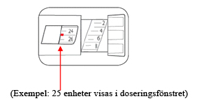 - Det går inte att ställa in en större dos än det antal enheter som återstår i pennan.