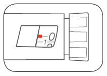 - Sätt tillbaka skyddshatten genom att se till att hattklämman är i rak linje med dosindikatorn och tryck rakt in.