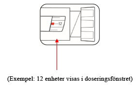 - Kontrollera alltid siffran i doseringsfönstret, för att förvissa dig om att du har ställt in rätt dos.