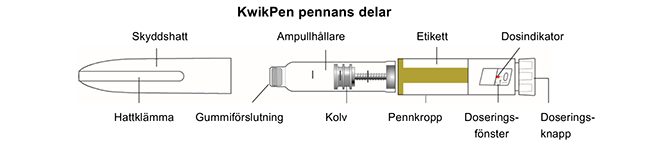 - Förvara inte pennan med kanylen monterad, insulin kan läcka ut, kanylen kan bli igentäppt och det kan bildas luftbubblor i ampullen.
