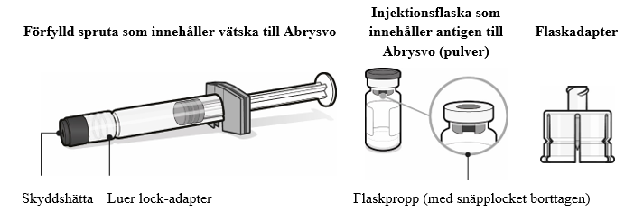 Hantering av injektionsflaska med antigen till Abrysvo (pulver), förfylld spruta med vätska och flaskadapter