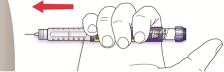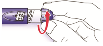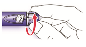 - Tryck inte på injektionsknappen medan du vrider, insulin kan då komma ut ur nålen.
