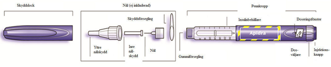 Apidra i en förfylld injektionspenna ska endast injiceras under huden (se även avsnitt Hur produkten används). Tala med läkare om du behöver injicera ditt insulin med en annan metod.