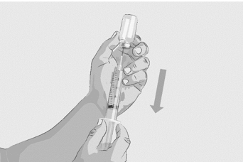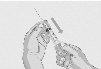 Kontrollera injektionsflaskan och vätskan Ta ut injektionsflaskan ur kartongen. Titta noggrant på vätskan i injektionsflaskan. ASPAVELI är en klar, färglös till lätt gulaktig vätska. Kontrollera om det finns partiklar eller färgförändringar (figur 2). Använd inte injektionsflaskan om: