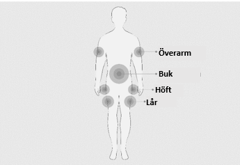 - Reaktion på injektionsstället, såsom rodnad, eller förhårdnad av huden